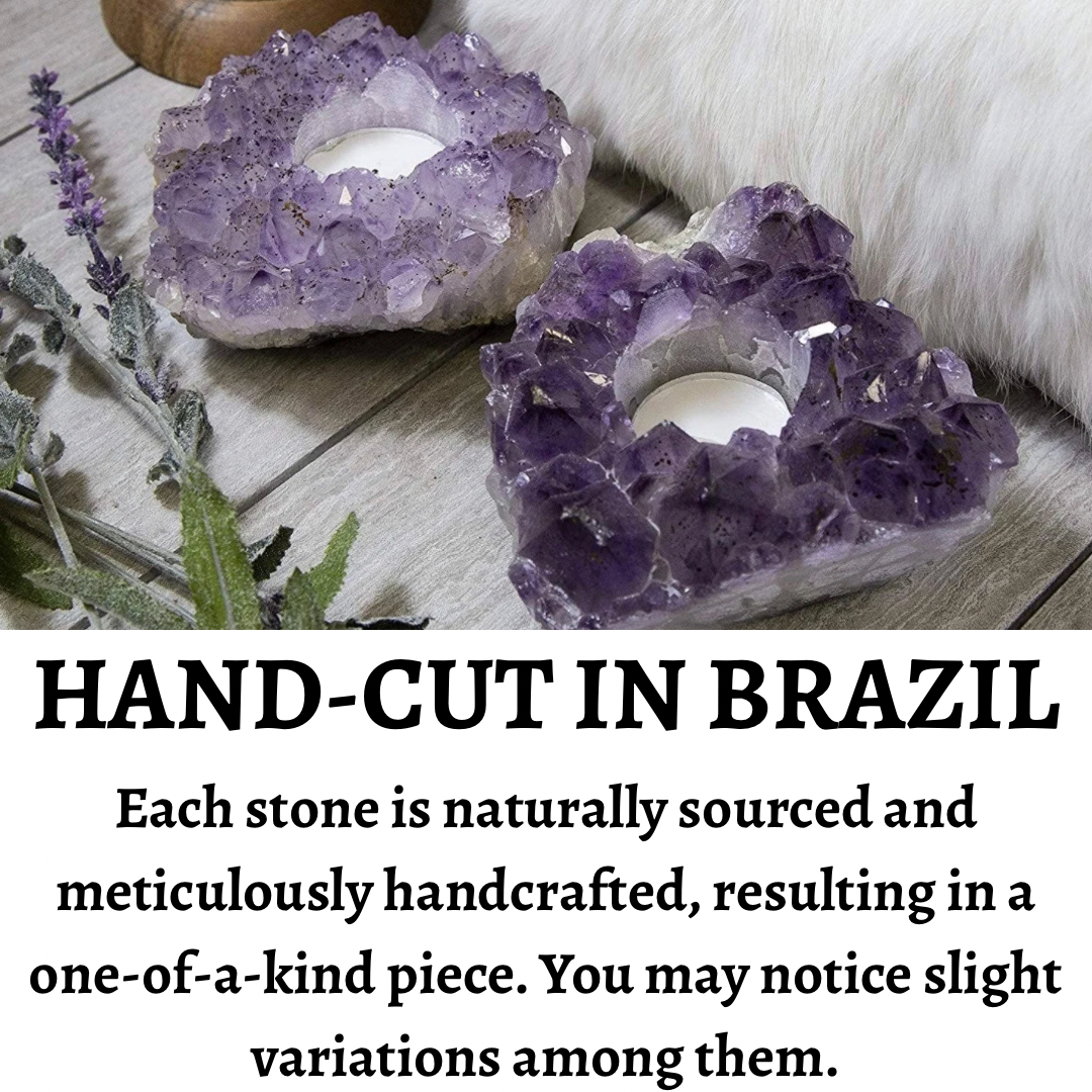 Infuse your space with calming energy and spiritual beauty with our handcrafted Amethyst Tea Light Candle Holder. Made from genuine, ethically sourced amethyst, each holder showcases natural crystal formations in rich shades of violet and lavender. Revered for its soothing and protective properties, amethyst is known to promote peace, clarity, and spiritual growth.